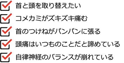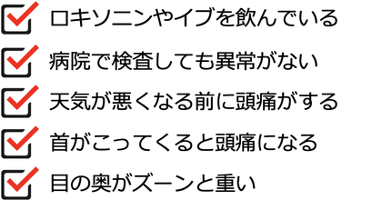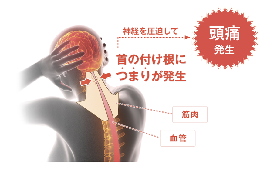 頭痛でお悩みの方の多くは、首のつけねや目の奥に重みを感じています。