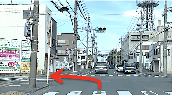 磐田市役所入り口を左折します。※左折してすぐ到着(2けんめ)しますので、ゆっくりお進みください。