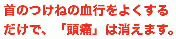 首こり頭痛治療はとてもシンプルです。「頭痛」は首のつけ根の血行不良が原因です。あなたの首はどんな状態になっているでしょうか?